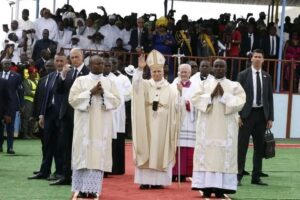 Dès la sortie de l’aéroport international de Douala, le ton de cet événement d’envergure nationale et spirituelle a été donné par une forte mobilisation des fidèles, massés le long du parcours menant au stade de Japoma, lieu choisi pour la célébration de la deuxième messe pontificale du souverain pontife en terre camerounaise.